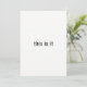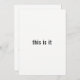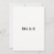 This simple minimalist modern black and white rehearsal dinner invitation features the simple words "this is it" on the front and the rehearsal dinner information on the back. Easy to customise with your text. More items with this design can be found in my It's Happening Minimalist Photo Wedding Suite in my Zazzle store: