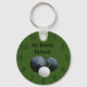Pictured are four black lawn bowls with a jack and a clock face with words saying its Bowls oclock