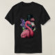 I give wanted to give this a 4 instead of a 5 because these Basic DARK T0shirts run unexpectedly SLIM or Narrow. Which is great if you do not have a potbelly, but I have a paunch. It isn't the shirt's fault that I've got a beer belly. The design and shirt itself is a quality cotton shirt. The color is more of a deep purple, but still a very pretty color. The Basic DARK T-shirts run a bit SLIMMER than the Basic Ts. The neck is a fraction narrower (or seems to be narrower) also. I'm a paunchy middle-aged woman and my neck is 12 inches (31cm) thick and the neckline fell about the same as in the photo of the man, and I had the desire to tug it a bit. So if you're a thick necked man or like loose shirts, be aware these are slimmer shirts. Once I get rid of my lockdown paunch it'll look great. The shirt washed well in cold water with no apparent bleeding. We don't have a dryer, so it hung dry. Did not shrink. Love the colors and the design. The design looks smaller on my shirt than it does on the model on-line. But still, it looks good on the shirt. The printing looks as it does on the model, just the size seems fractionally smaller. Washed garment in cold water, hung dry and design appeared unaffected.