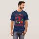 I give wanted to give this a 4 instead of a 5 because these Basic DARK T0shirts run unexpectedly SLIM or Narrow. Which is great if you do not have a potbelly, but I have a paunch. It isn't the shirt's fault that I've got a beer belly. The design and shirt itself is a quality cotton shirt. The color is more of a deep purple, but still a very pretty color. The Basic DARK T-shirts run a bit SLIMMER than the Basic Ts. The neck is a fraction narrower (or seems to be narrower) also. I'm a paunchy middle-aged woman and my neck is 12 inches (31cm) thick and the neckline fell about the same as in the photo of the man, and I had the desire to tug it a bit. So if you're a thick necked man or like loose shirts, be aware these are slimmer shirts. Once I get rid of my lockdown paunch it'll look great. The shirt washed well in cold water with no apparent bleeding. We don't have a dryer, so it hung dry. Did not shrink. Love the colors and the design. The design looks smaller on my shirt than it does on the model on-line. But still, it looks good on the shirt. The printing looks as it does on the model, just the size seems fractionally smaller. Washed garment in cold water, hung dry and design appeared unaffected.