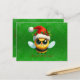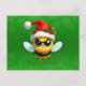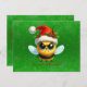 A cute happy bee holding gifts in it's wings, on a green snowflake background.