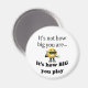 Magent with cute and funny, humour text saying "It's not how big you are it's how BIG you play." Includes a cute face cartoon character wearing sunglasses with a grin and giving the thumbs up sign.
