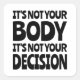 Text design with the quote "It's not your body It's not your decision". Stand up for human dignity, gender equality, women's rights and self determination.