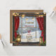 Enjoy the quiet of this invitation with snowing outside, red drapes and lit lanterns with softly glowing lights