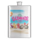 The product is a good size and came exactly as it was pictured. The lid is not attached to the flask, which could be dangerous on drunken nights... The print came out surprisingly well and looks very sharp. Would definitely recommend.
