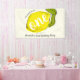 This cute " it's sweet to be one " girl's 1st birthday welcome banner / sign features a light lemon yellow background with a big yellow lemon and small polka dot patterns. change the background colour and personalise it for your needs. You can find matching products at my store.