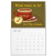 This "It's Tea Time" 2021 wall calendar features cute tea graphics with amusing sayings about tea. All graphics and text can be personalized with your own sayings and text and graphics can be transferred to 2022 calendar and years beyond. Cover features a beautiful vivid red burgundy and white polka teapot and matching teacup sitting on a rich solstice green, tan and burgundy background elements with a circle dots pattern. The perfect Christmas gift or buy anytime and hang on your office wall. This is a highly customizable calendar.