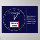 Design description: Dark blue background. Light grey numbers. In white block text above the centre, the words, "It's time to." Below the centre, within a red and white double rectangle design, the words "Impeach Trump" in block blue letters. Outside of the clock, the words, "Coordinated, Coherent, Fact-Based Impeachment Enquiry Now."