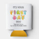 IT'S YOUR FIRST DAY TOO Kindergarten Mum Can Cooler, designed for schools or teachers to use as gifts to moms and dads who are adjusting to their little ones going to pre-school or kindergarten for the first time. Design shows fun colourful animal monster typography and there is CUSTOMIZABLE TEXT where you can add your teacher or school name. Matching gifts available.