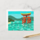 A pretty postcard featuring the famous Itsukushima Shrine. Itsukushima Shrine is a UNESCO World Heritage Site.