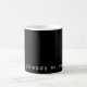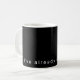 A sleek, full-wrap black mug featuring white minimalist typography.