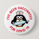 I've been fully vaccinated for covid19 pinback buttons. Custom coronavirus vaccination text with cute animal bird holding a big syringe needle. Pandemic vaccine encouragement. Penguin medical nurse cartoon template. Also available for on other products. Available in small, medium and big sizes.