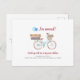 On the move on my bike moving change of address announcement card featuring a watercolor feminine bicycle with a flower basket and luggages on the rack. Perfect to let friends and family know about your new address and where the likely housewarming party will happen