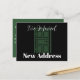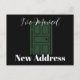 Use this minimalist postcard to tell your loved ones that you've moved. The design combines modern script and bold typography on a solid black background on the front, while the back is solid hunter green. Convert our message to your own, update the address and your name and you've got what you need to announce your move.