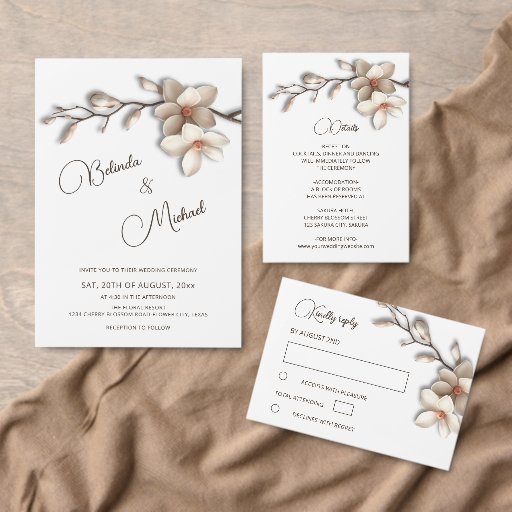 Magnolia 3D Flowers Calligraphic Script WeddingDesigned by Nina Baydur