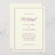 This elegant, ivory wedding invitation features classic, old-world style with plum purple romantic calligraphy. All of your wedding details are surrounded by a modern purple delicate frame. Set the tone for your luxe, sophisticated Italy inspired wedding with this classy, minimalist design.