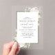 Presenting a beautifully framed acrylic wedding invitation adorned with elegant ivory and sage floral accents, perfect for a sophisticated wedding celebration. This design highlights a delicate floral frame around your wedding details, offering a refined, botanical touch. Ideal for spring and summer weddings, it blends timeless elegance with a modern acrylic format, creating an unforgettable invitation for your special day.