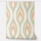 Ivory Beige Olive Sage Green Tan Ogee Wave Pattern Wallpaper