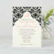 This ivory wedding invitation with black damask and coral accents has an area for your monogram. You could also use the area to signify an anniversary. The paper type and all the text is fully customisable. If you require any matching items in this design, please email your request to niteowlstudio@gmail.com.