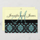 Ivory Blue Damask Wedding Invitation with Monogram