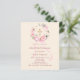 A soft ivory blush background, decorated with watercolored pink and white flowers in a wreath and a golden cross. A pink bow. Personalize and add a name and details.