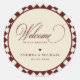 Ivory & Burgundy Checkered Retro Wedding Welcome Classic Round Sticker