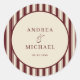Ivory & Burgundy Stripes Retro Custom Wedding Classic Round Sticker