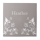 Sweet and dainty Butterfly Floral Tile with a muted dusty grey background and ivory butterflies and floral vine embellishments. This elegant floral tile would complement any decor! Easy to customise, simply add the personalised text of your choosing in the text fields provided. Click on the "Customise It" button to find additional personalisation options.