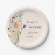 Ivory Cream Wildflowers Heart Script Bridal Shower Paper Plate