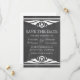Elegant and chic Deco Chalkboard Save the Date Announcement featuring a trendy chalkboard texture look background and a pair of ivory art deco swirl borders. This lovely save the date invitation is perfect for announcing your art deco 1920's themed wedding. Easy to customise, simply add your wedding details. Click "Customise It" to find additional personalisation options.