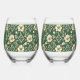 Ivory Floral and Emerald Wedding Anniversary Stemless Wine Glass