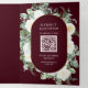 Ivory Floral Photo Burgundy QR Code Wedding Tri-Fold Invitation
