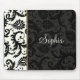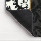 This elegant looking ivory, gold, and black damask mousepad has a spot for your name, monogram, or other text.