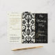 This elegant ivory, gold, and black damask wedding program matches the wedding invitation and collection shown below. Fold the program down the centre. ****PLEASE NOTE that the higher grade paper is a card stock and does not fold well. If you need any help customising this with your own information, or if you have any requests, please email niteowlstudio@gmail.com.