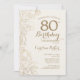 Ivory Gold Floral 80th Birthday Party Invitation