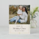 Send timeless holiday greetings with this elegant single photo card from Redwood & Vine Design Co. The front features your favourite photo above the classic greeting “Wishing You Holiday Cheer,” framed in minimalist black typography on a soft cream background. A delicate gold foil bow at the bottom adds a festive touch. Perfect for Christmas or all-occasion holiday correspondence, this versatile design offers a refined, modern style for your seasonal mailing.