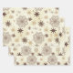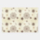 This elegant wrapping paper set features three flat sheets of ivory background wrapping paper with golden and brown flowers and stars. Each sheet has a similar but different pattern.