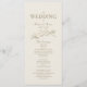 Elegant, classic, modern, minimalist, simple ivory gold wedding program with unique hand drawn couple love birds and trendy calligraphy script.