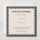 Square certificate of authenticity in off-white with a gothic dark brown font, a dark brown ornate frame, and your name in a signature script.