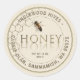 Personalise this honey label with your apiary name, beekeeper, address and net weight. Honeycomb on an ivory background. The word HONEY is written in a metallic gold font, and is reflected again beneath the word. Realistic Bee near honeycomb. Common honey net weight conversions: 8oz (227g), 12oz (340g), 16oz (454g), 32oz (907g), 5lb (2.27kg).