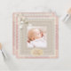 Pretty vintage pink and ivory lace with pearls baby girl picture baptism and christening invitation. Add your details to the front and back adding your event details, font style, font size & colour, and wording.
