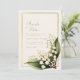 Exude timeless grace with this stunning Lily of the Valley botanical illustration. The design features delicate, ivory-white bell flowers arching elegantly over lush, deep green leaves with realistic ribbed textures. A sophisticated triple-line gold rectangular frame anchors the corner arrangement, set against a warm, cream-textured background that evokes the feel of high-end parchment. Tiny white wildflower accents and golden-toned stems add layers of intricate detail, creating a polished and organic aesthetic for your special day. This botanical layout is a premier choice for a classic spring wedding or a sophisticated garden ceremony. The timeless white, green, and gold color story makes it a flawless fit for an elegant bridal shower, a refined engagement announcement, or an intimate garden-themed rehearsal dinner. It pairs beautifully with wedding palettes featuring emerald green, metallic gold, sage, and warm ivory, making it ideal for couples seeking a vintage-inspired or classic romantic aesthetic.