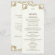 Add a touch of timeless elegance to your reception with this personalized Baroque Christian Wedding Menu card, perfect for a Rococo Wedding or regency themed celebration. This vintage-inspired design features an ornate mocha tone frame detail set beautifully against an ivory background, creating a striking yet refined look. A monogram of the couple's initials sits gracefully at the top, adding a bespoke and romantic element. The text layout combines modern and script fonts for a balanced and sophisticated finish with a meaningful bible verse on the back. Ideal for a classic and elegant, God-centered wedding celebration, this menu card brings old-world charm and grace to your table setting.