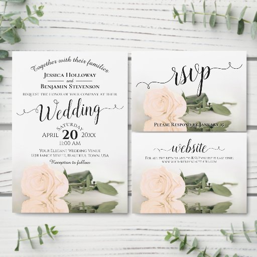 Ivory Peach Rose Elegant Romantic Photo Wedding Invitation