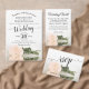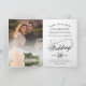 These beautiful wedding invitations feature a stunning design with a single long-stemmed pale orange or ivory peach coloured rose reflecting in water with waves and ripples. The front displays the first names of the couple in fancy script lettering. Inside is space for the couple's photo along with all of the usual invitation information. Elegant and romantic, these invitations are sure to make an impression.