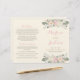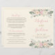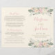 This elegant boho style wedding ceremony design features romantic peony flowers, soft green foliage, and rustic bird feather accents with light ivory printed background colour (can be modified). Personalise the stylish pink script text and other text with your preferred wording. Soft spring or summer colour scheme includes shades of pink, green, grey, and gold.