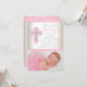 Ivory Pink Lace Diamond Cross Photo Baptism Invitation