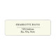 An ivory coloured background.   Personalise and add your name and address. Black letters.