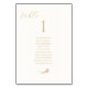 Elegant, fresh and modern. This simple and elegant table number card with guestlist features a whimsical line drawn blush rpink ose and a contemporary set of fonts in a faux gold, against a light ivory background. The front design is repeated at the back for better table visibility. Alternatively mount the full set of cards together on a display board. This design includes 10 names, however 12 names (max) still fits.