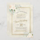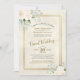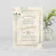 This beautiful virtual wedding invitation features a gorgeous boho chic design with ivory or very pale peach watercolor roses, eucalyptus leaves and greenery on a mottled cream coloured background with a faux foil gold frame. There is lacy golden script calligraphy and a flexible field for info so you can print your livestream instructions directly or point your guests to your website.. Lovely way to invite your family and friends to share in your special day.